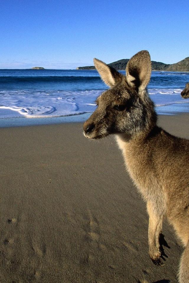 Wallpaper Kangaroos come to the beach