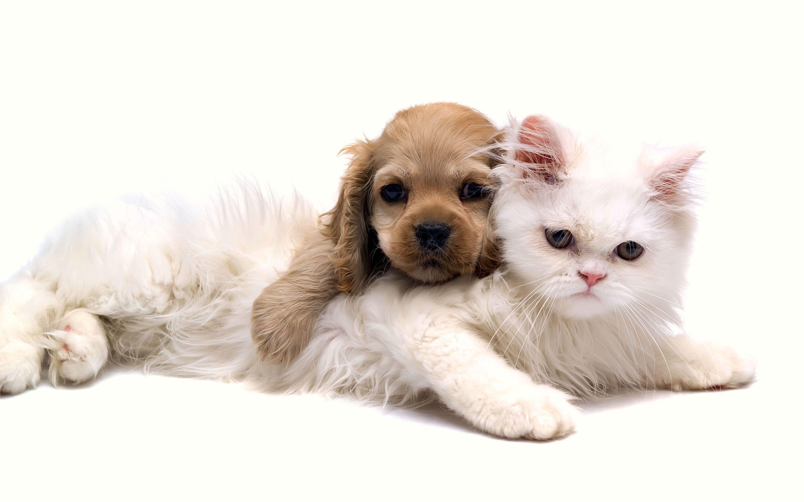Wallpaper White cat and puppy