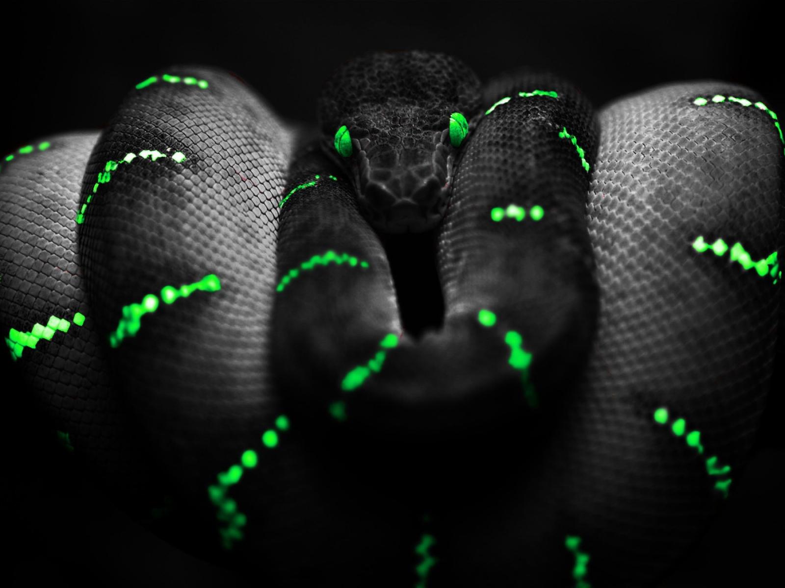 Wallpaper Black snake with green stripes
