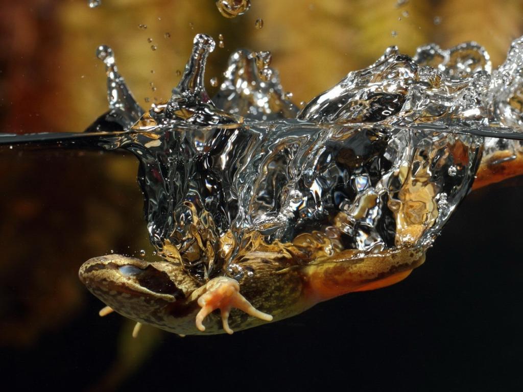 Wallpaper The lizard had fallen into the water