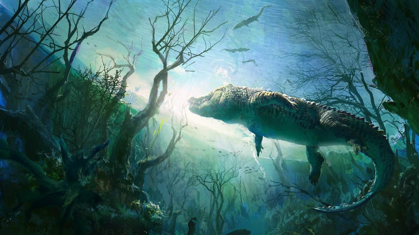 Wallpaper Crocodile in the water of the river