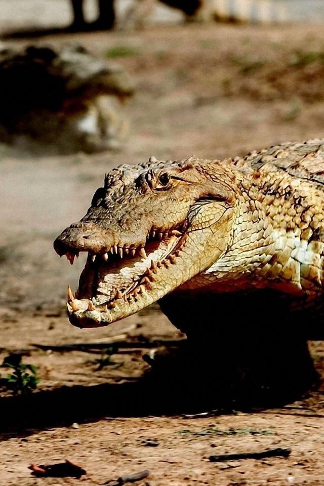 Wallpaper Crocodile run on the land