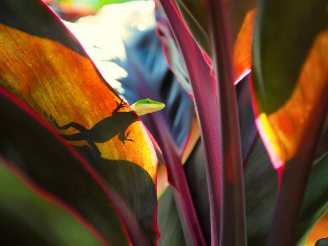 Wallpaper Lizard on the broad leaves