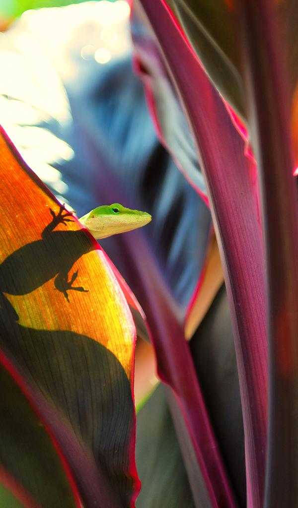 Wallpaper Lizard on the broad leaves
