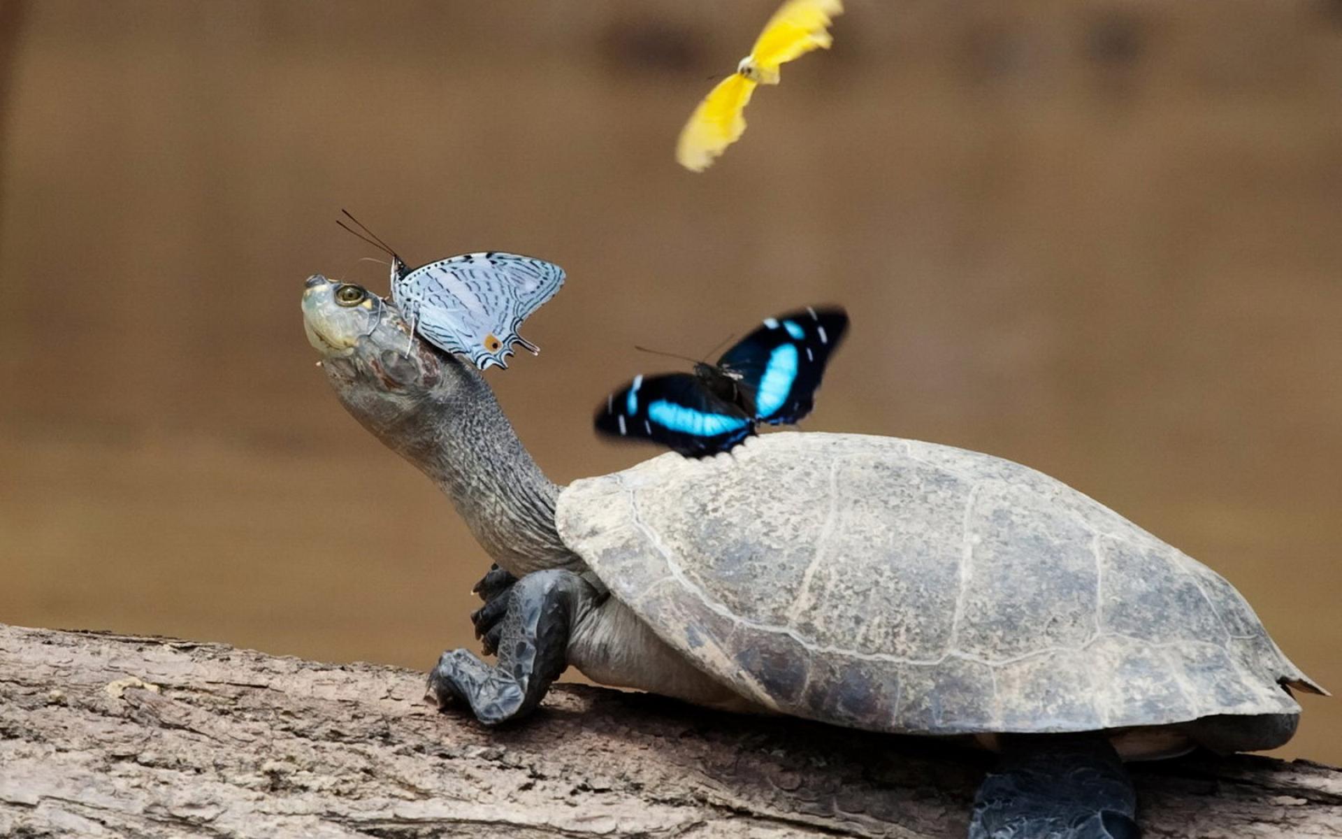 Wallpaper Turtle and butterflies