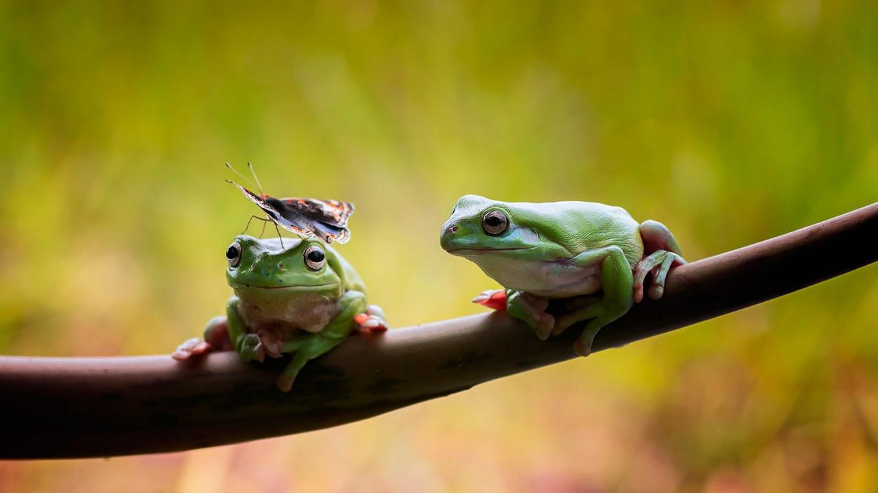 Wallpaper Two frogs sitting on a branch
