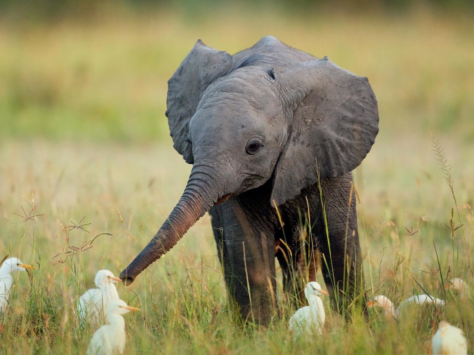 Wallpaper Elephant surrounded by ducks