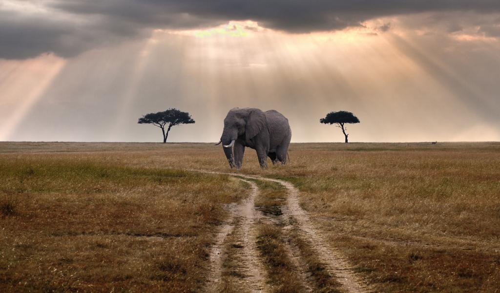 Wallpaper Elephant on the road