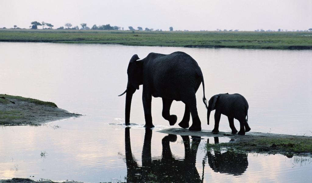Wallpaper Elephant mother with child