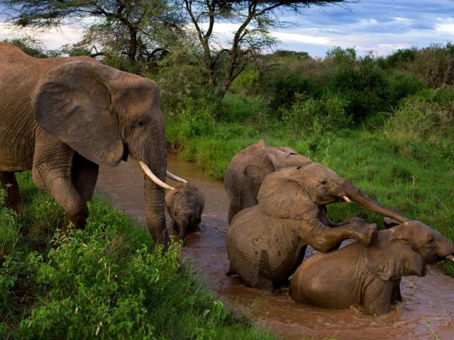 Wallpaper Elephants bathe