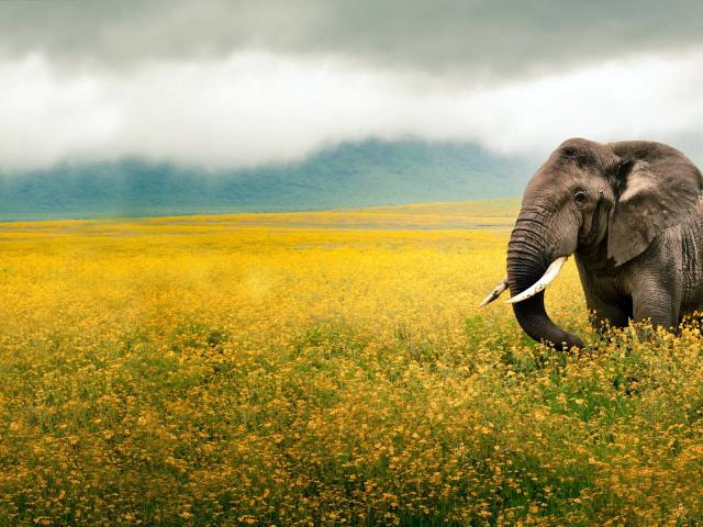 Wallpaper Elephant on the field