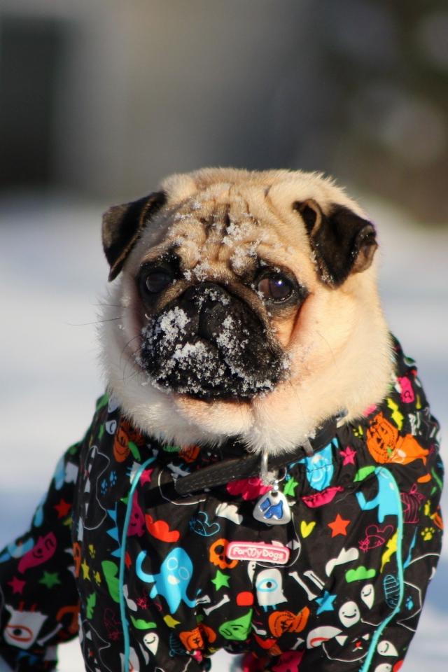 Wallpaper Pug in winter clothes