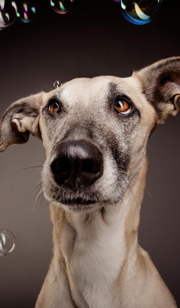 Wallpaper Confused dog among soap bubbles