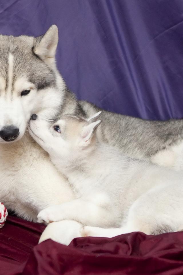 Wallpaper Husky puppy with his mother