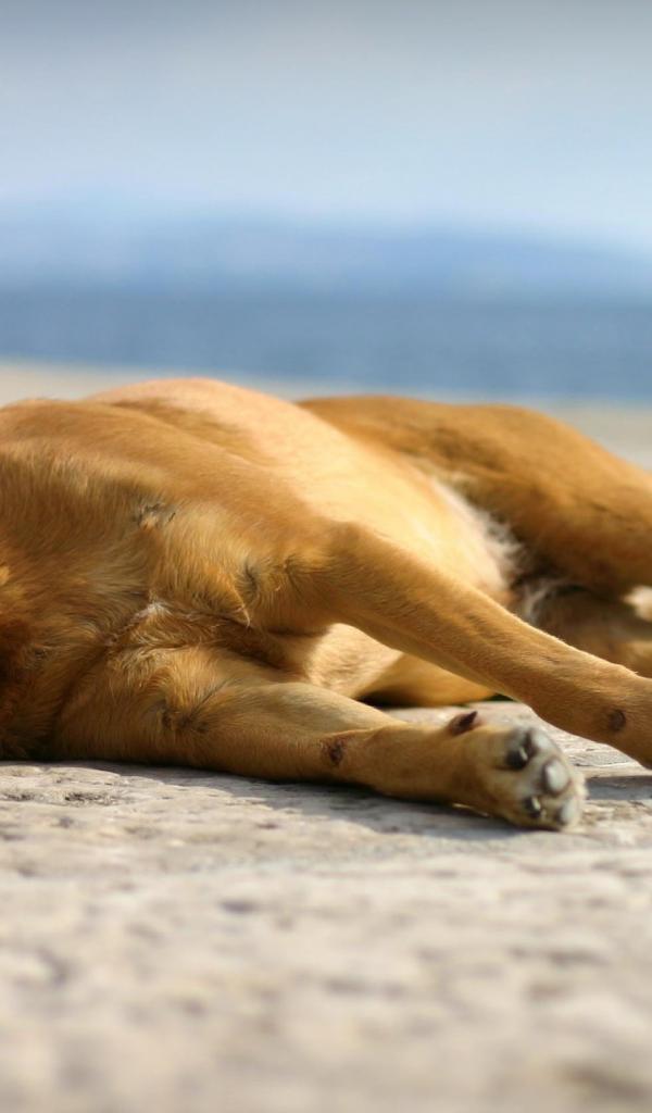 Wallpaper Dog sleeping on the waterfront