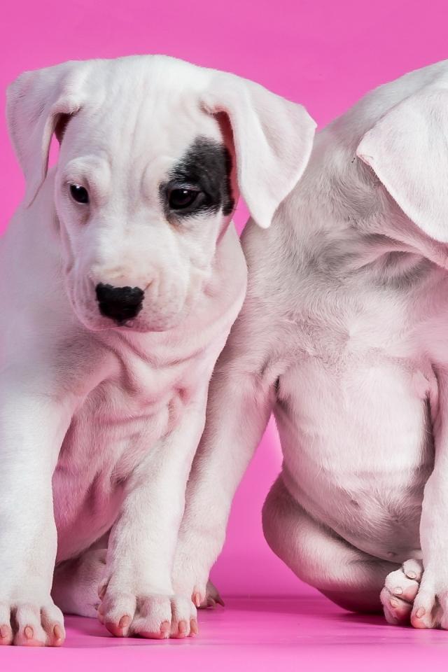 Wallpaper White puppy on a pink background