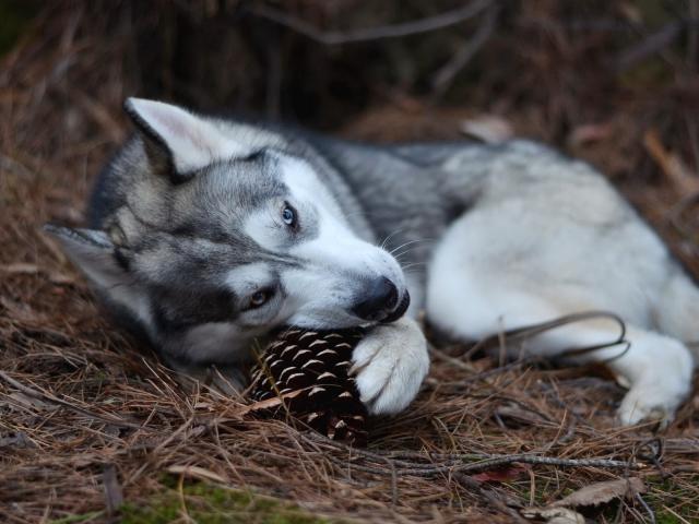 Wallpaper Husky playing bump in the forest
