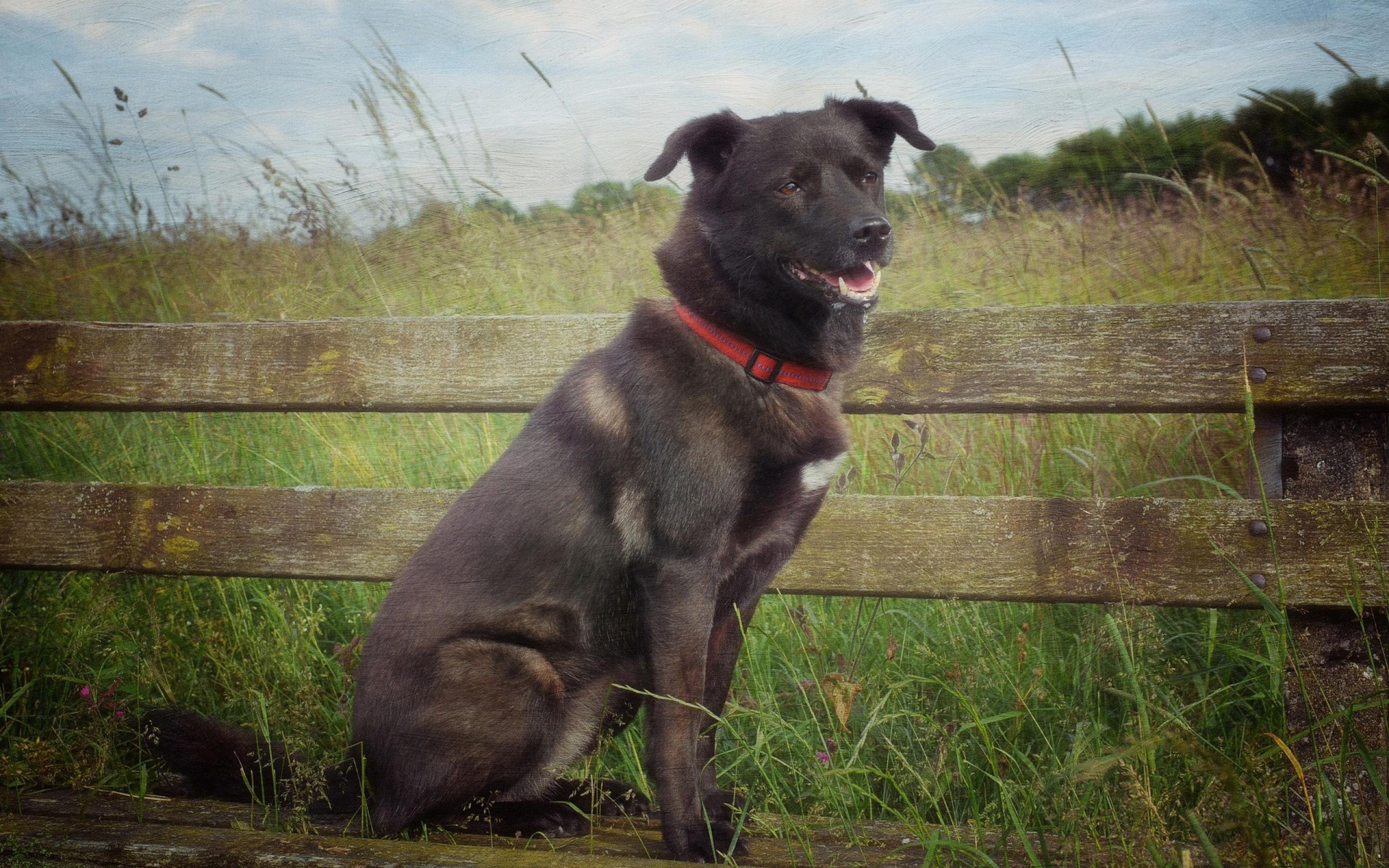 Wallpaper Watchdog at wooden fence