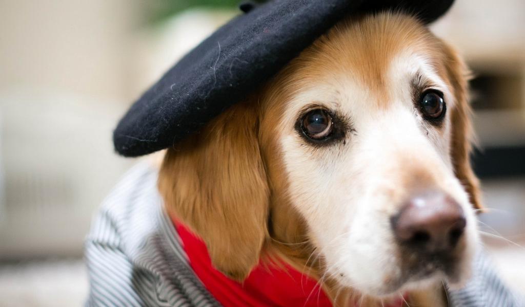 Wallpaper Dog in a black beret