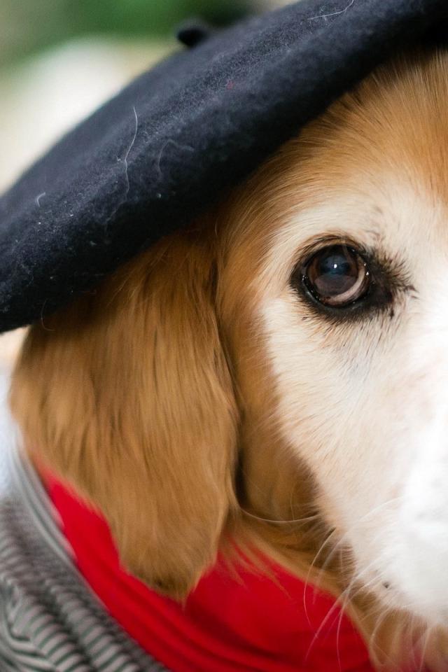 Wallpaper Dog in a black beret