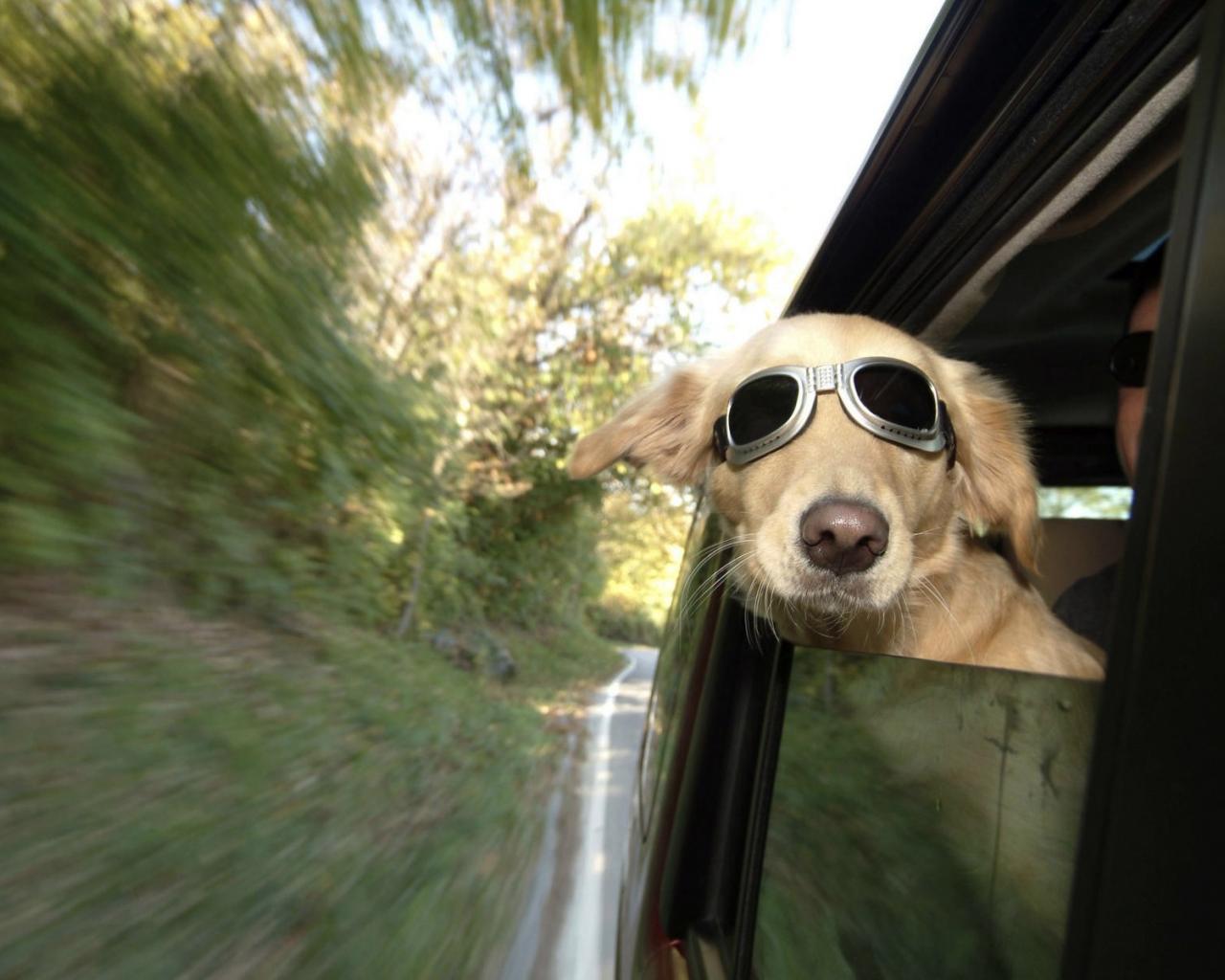 Wallpaper Dog with glasses looking out the window