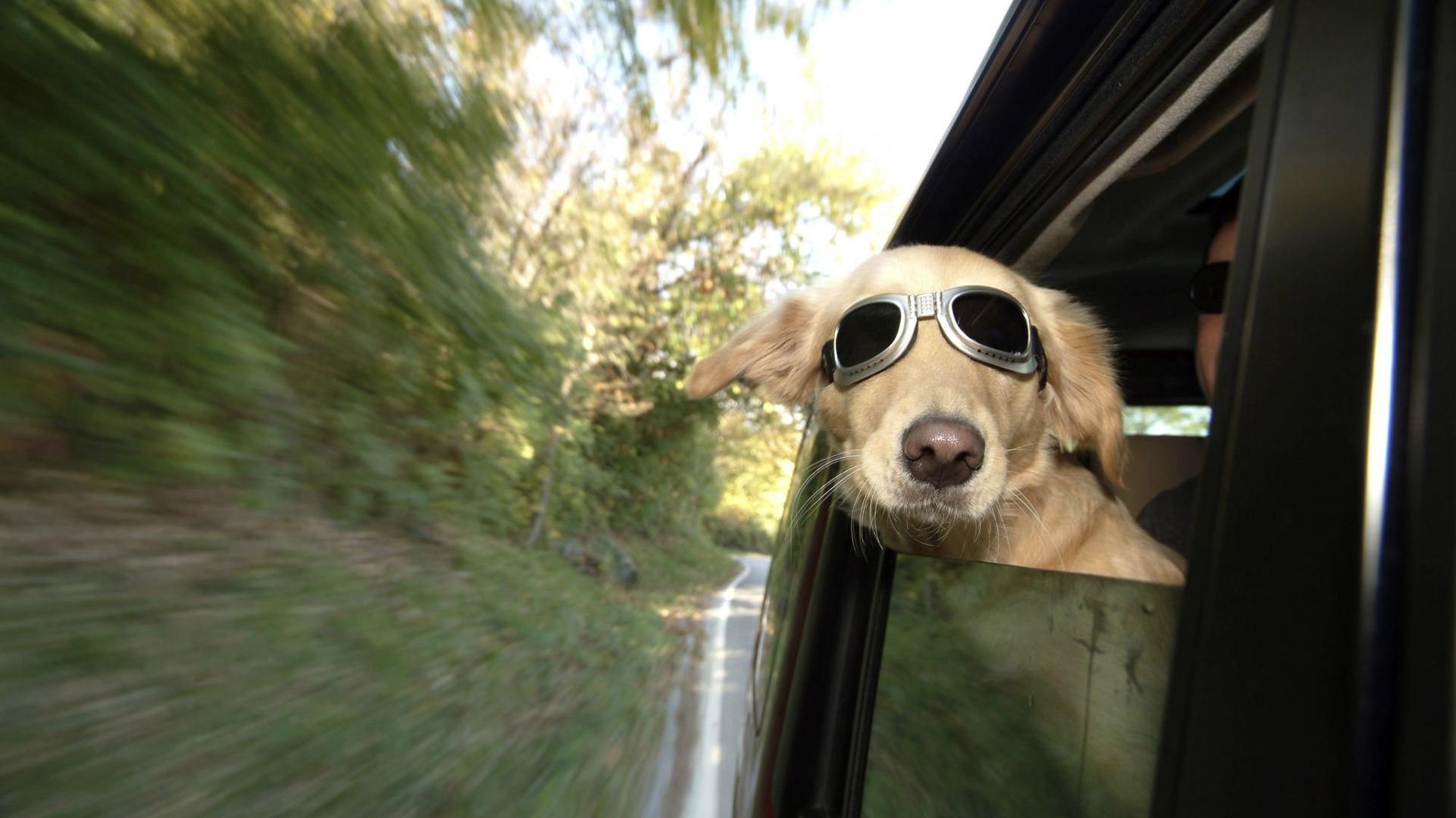 Wallpaper Dog with glasses looking out the window