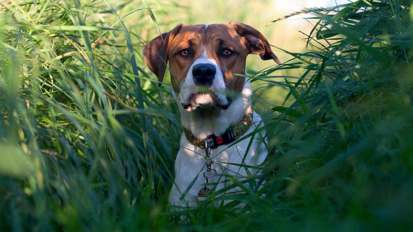 Wallpaper Dog in green grass thickets