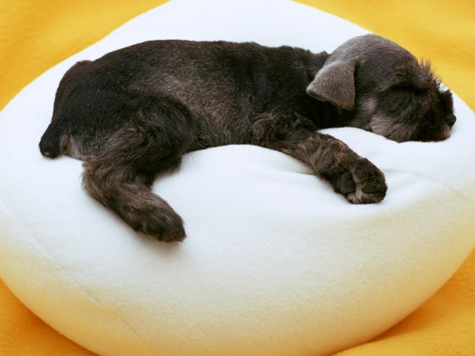 Wallpaper Puppy sleeping on a white ottoman