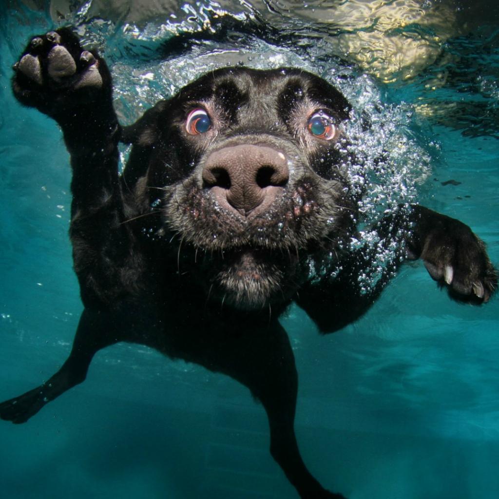 Wallpaper Black dog under water