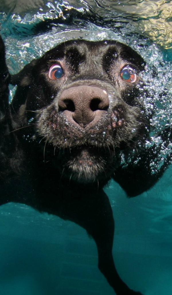 Wallpaper Black dog under water