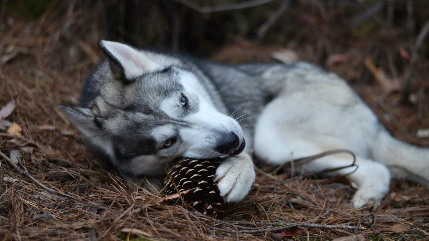 Wallpaper Husky dog playing with a bump