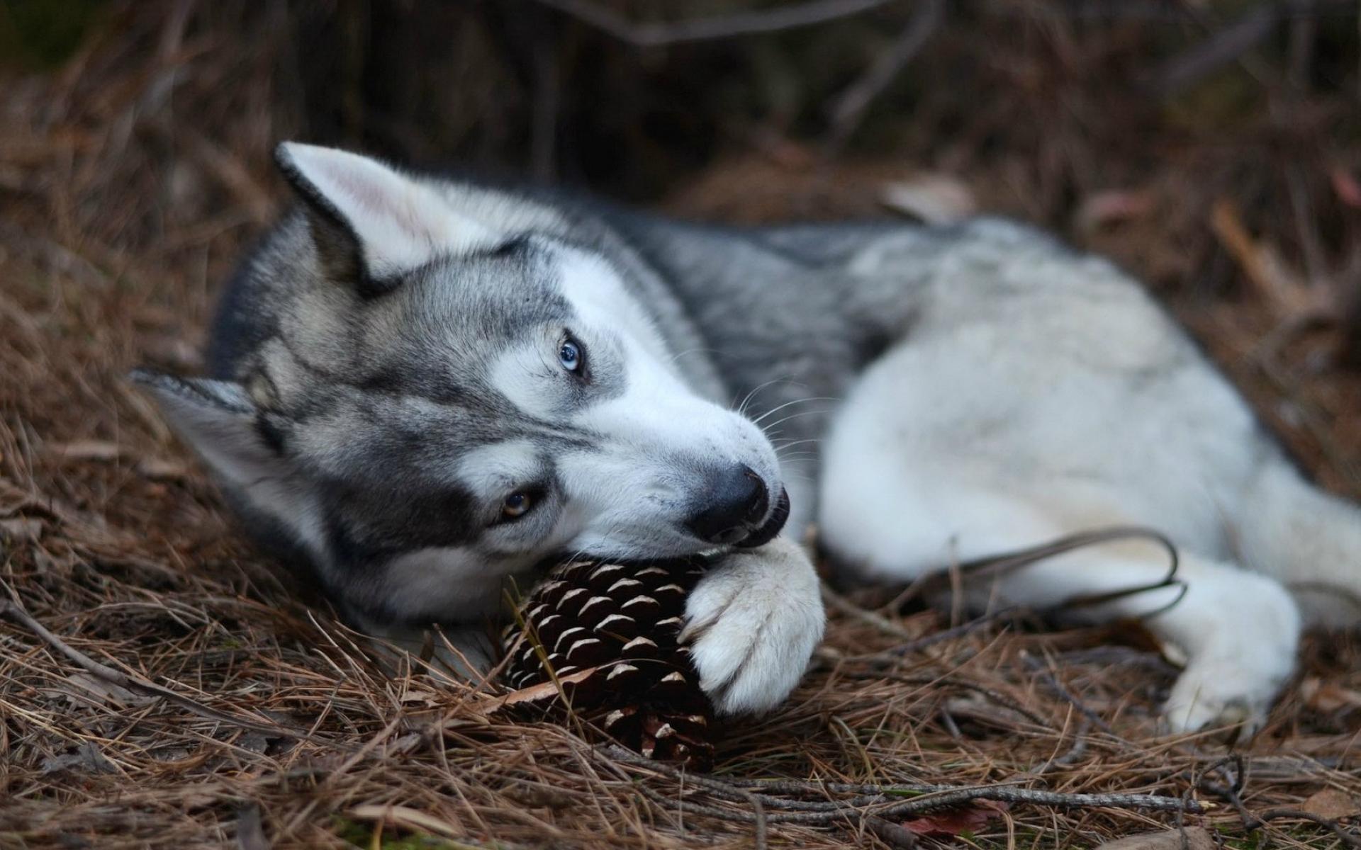 Wallpaper Husky dog playing with a bump