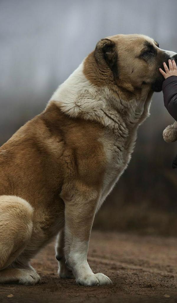 Wallpaper A child with a big dog