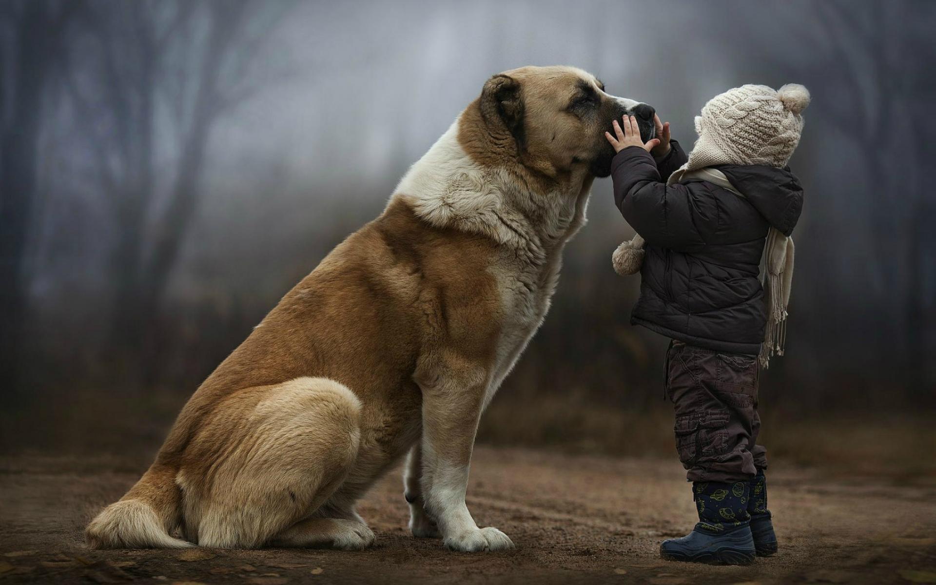 Wallpaper A child with a big dog