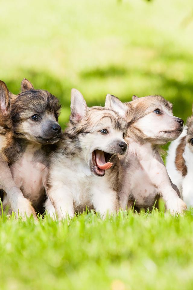 Wallpaper Puppies playing on the grass
