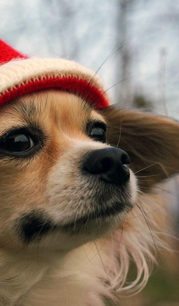 Wallpaper Dog in a red cap