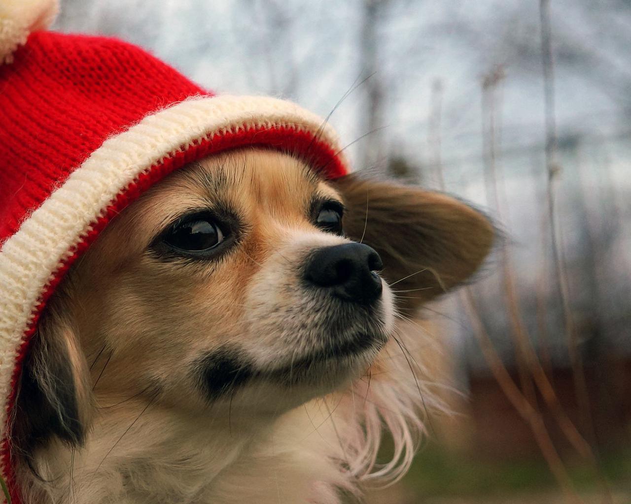 Wallpaper Dog in a red cap