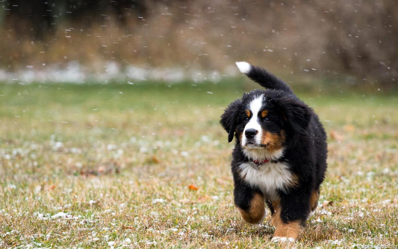 Wallpaper Dog on a snowy field