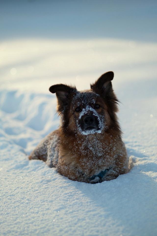 Wallpaper The dog in deep snow