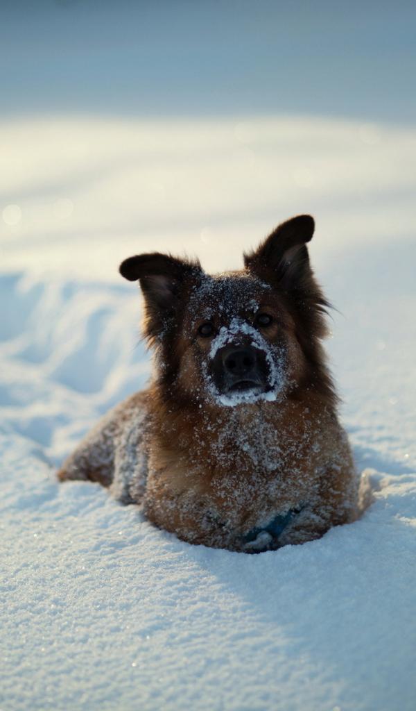 Wallpaper The dog in deep snow