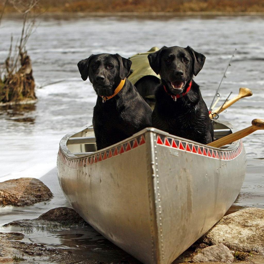 Wallpaper Black dogs in the boat