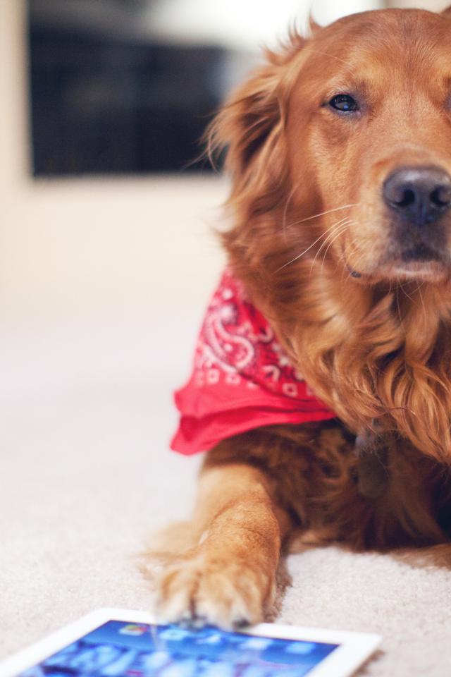 Wallpaper Red dog with the tablet