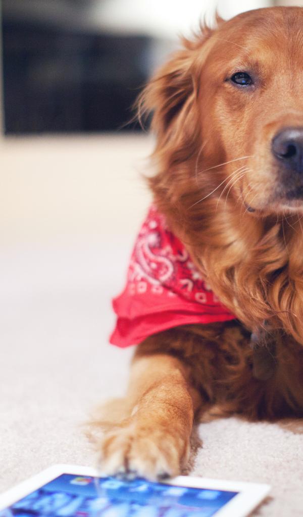 Wallpaper Red dog with the tablet