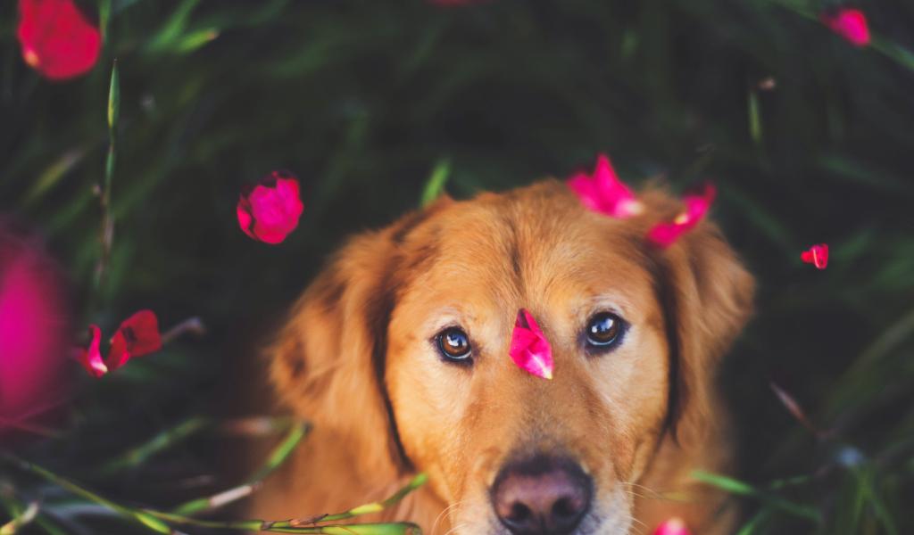 Wallpaper Dog with petals
