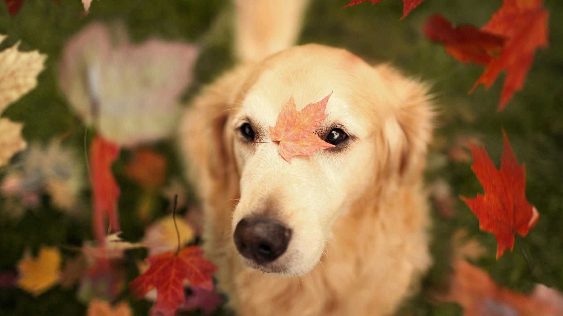 Wallpaper Dog with autumn leaves