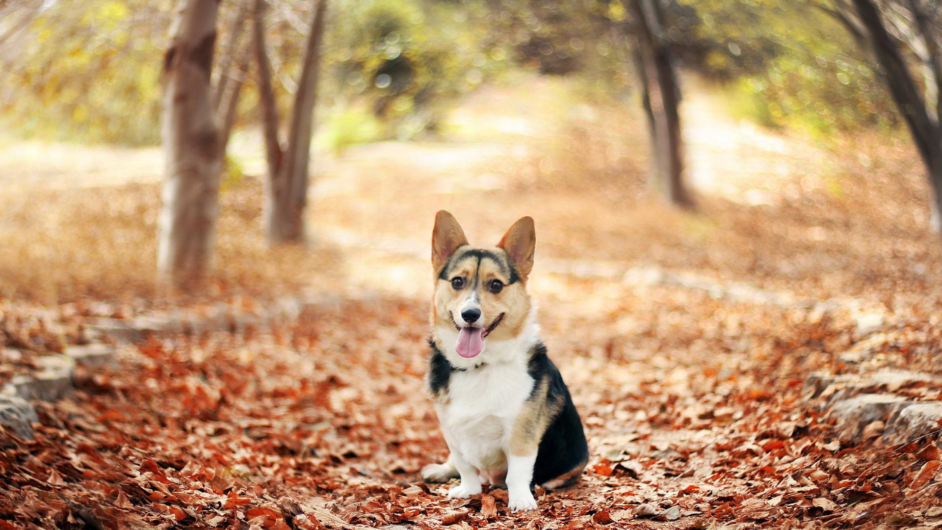 Wallpaper Dog on autumn leaves