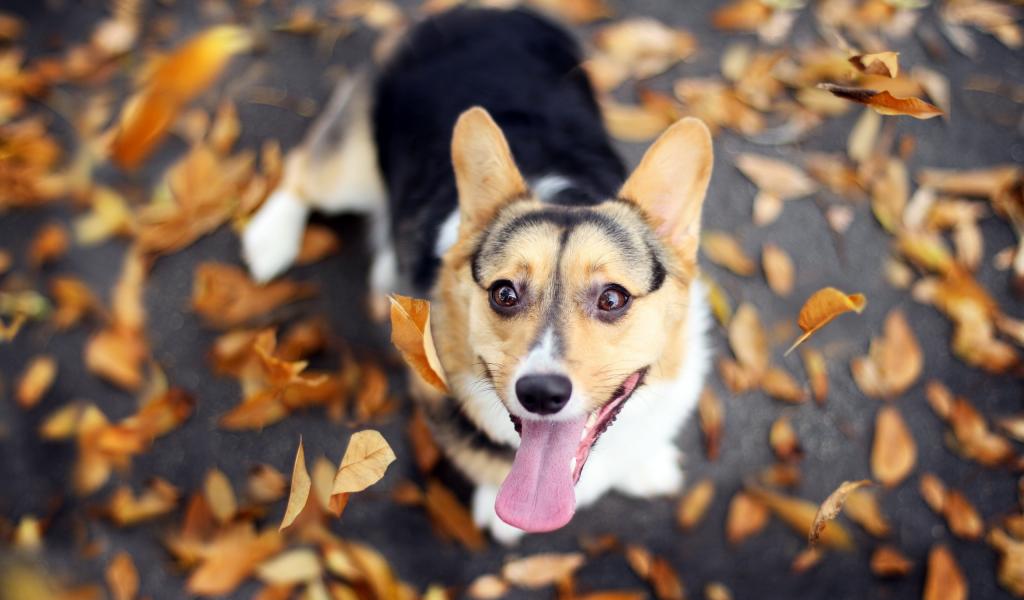 Wallpaper Dog and autumn leaves