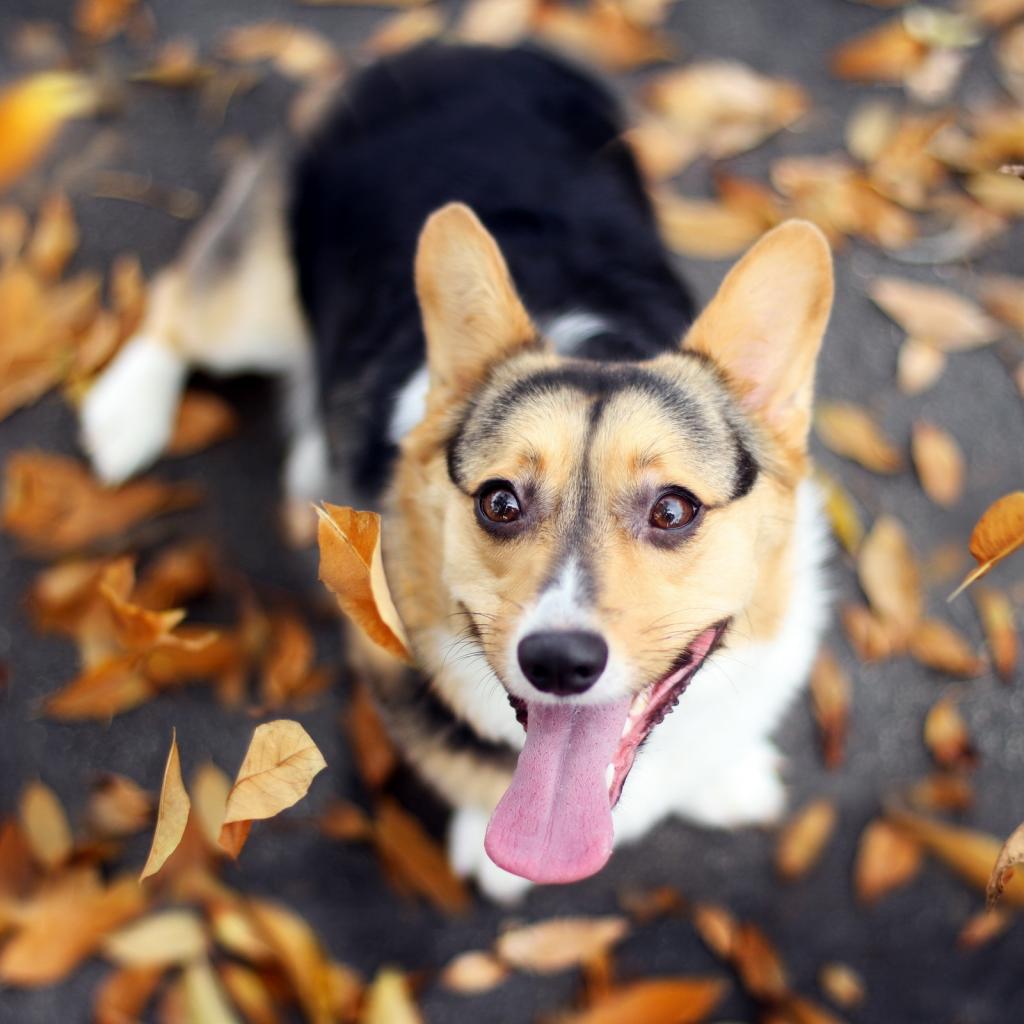 Wallpaper Dog and autumn leaves