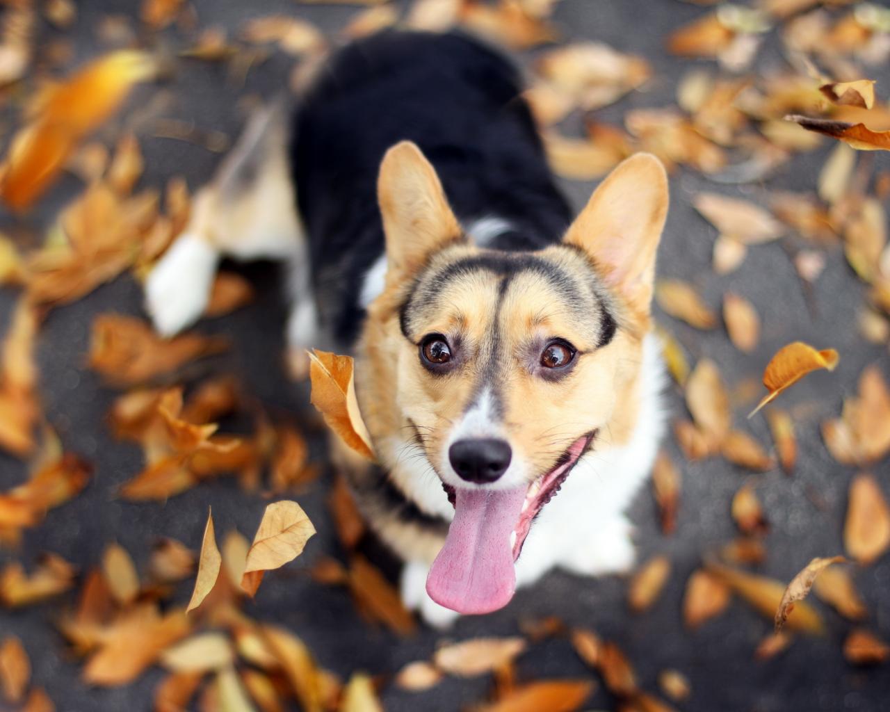 Wallpaper Dog and autumn leaves