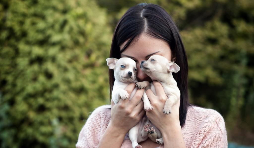 » Wallpaper The girl with the puppies